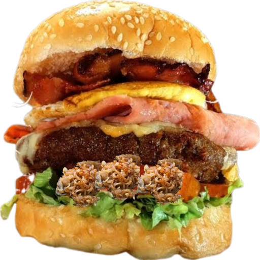 Carne tradicional 56g, coberto com queijo , presunto, ovo, bacon crocante, cal... Ver completo
