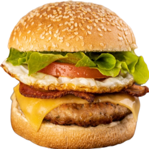 Saboreie esse apetitoso hamburguer de carne bovina 140g, coberto com queijo cheddar, presunto, ovo, bacon crocante, cal... Ver completo
